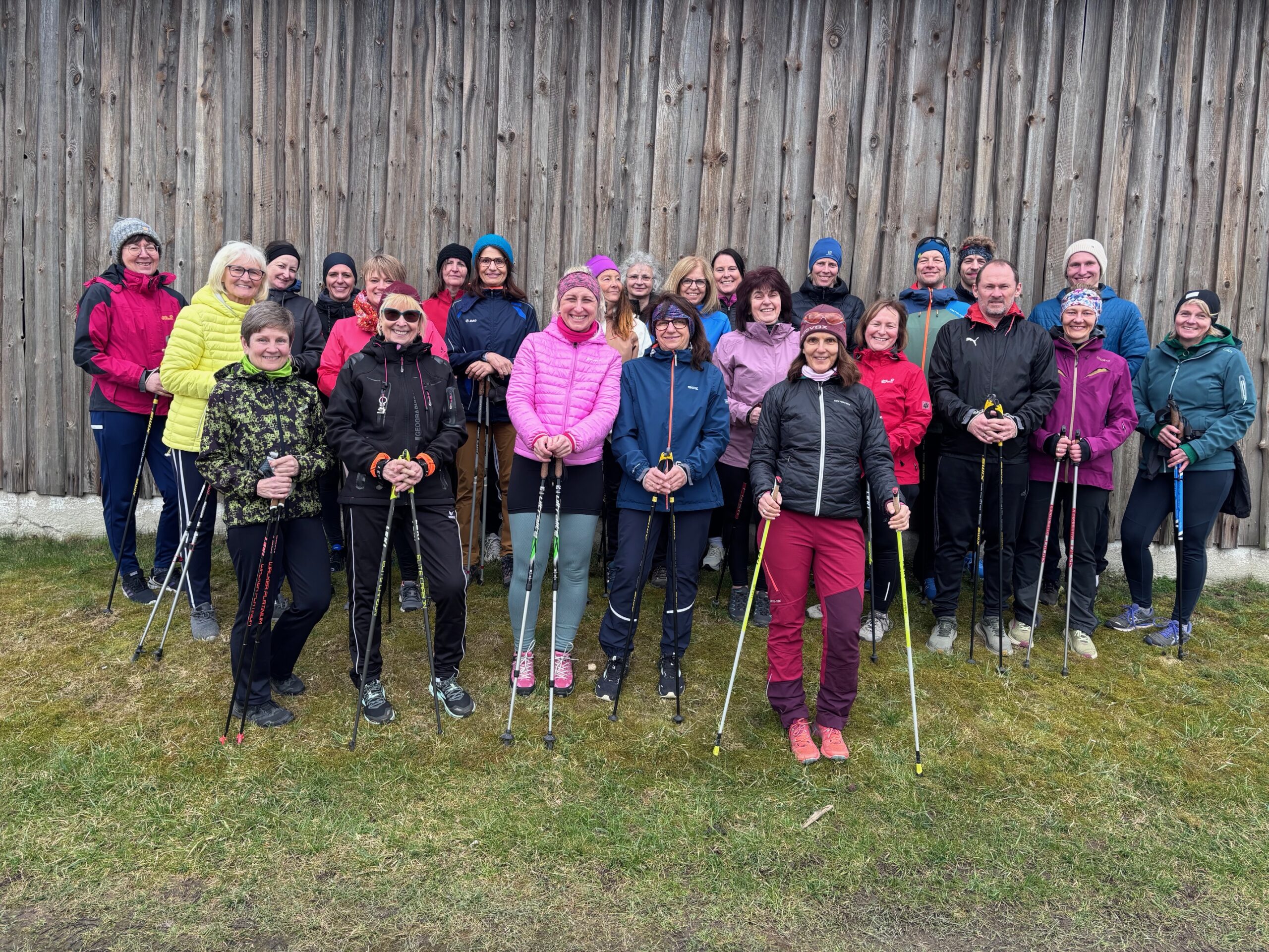 Nach der Mittagspause und ein paar allgemeinen Informationen der Lizenzverlängerungsmodi, z.B. der mittlerweile obligatorischen Selbstverpflichtungserklärung, ging es in den Outdoorbereich mit Reinhard Weber. Erfahrung seit Beginn des Nordic-Walking Hypes hierzulande Anfang der 2000er, wurde nach geschichtlichem Abriss, Ausstattung, Technik und Basis Wissen des Nordic-Sports der Gang auf Wald und Feldwegen gestartet.