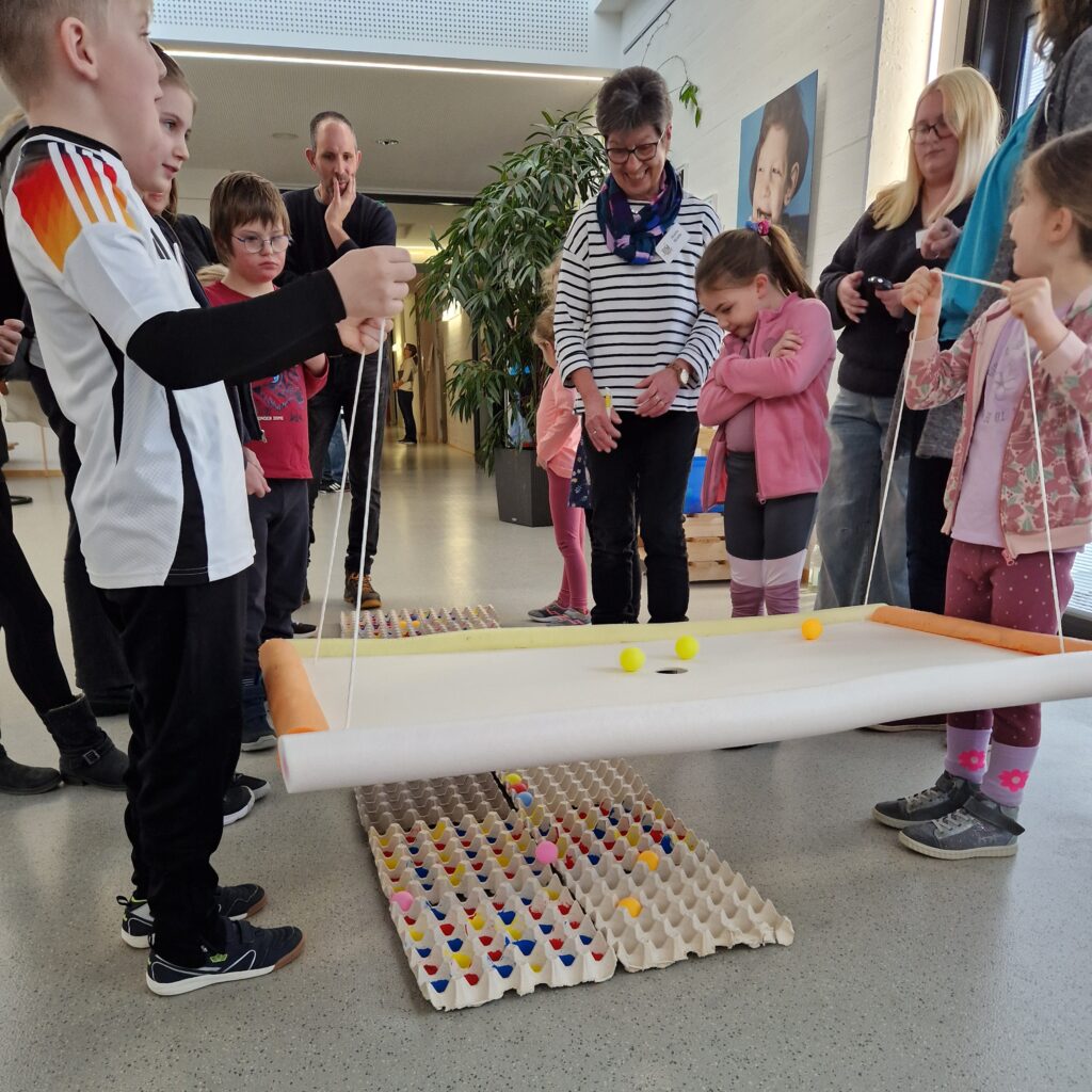 Die zehn Spiel- und Bewe­gungs­sta­tio­nen for­der­ten nicht nur viele unter­schied­li­che Fähig­kei­ten der Kin­der und die Mög­lich­keit sich gegen­sei­tig inner­halb der Mann­schaf­ten zu unter­stüt­zen und zu ergän­zen, sie sorg­ten auch für reich­lich Spaß und Freude. Die strah­len­den Gesich­ter der Kin­der waren das schönste Zeug­nis für eine gelun­gene Ver­an­stal­tung.