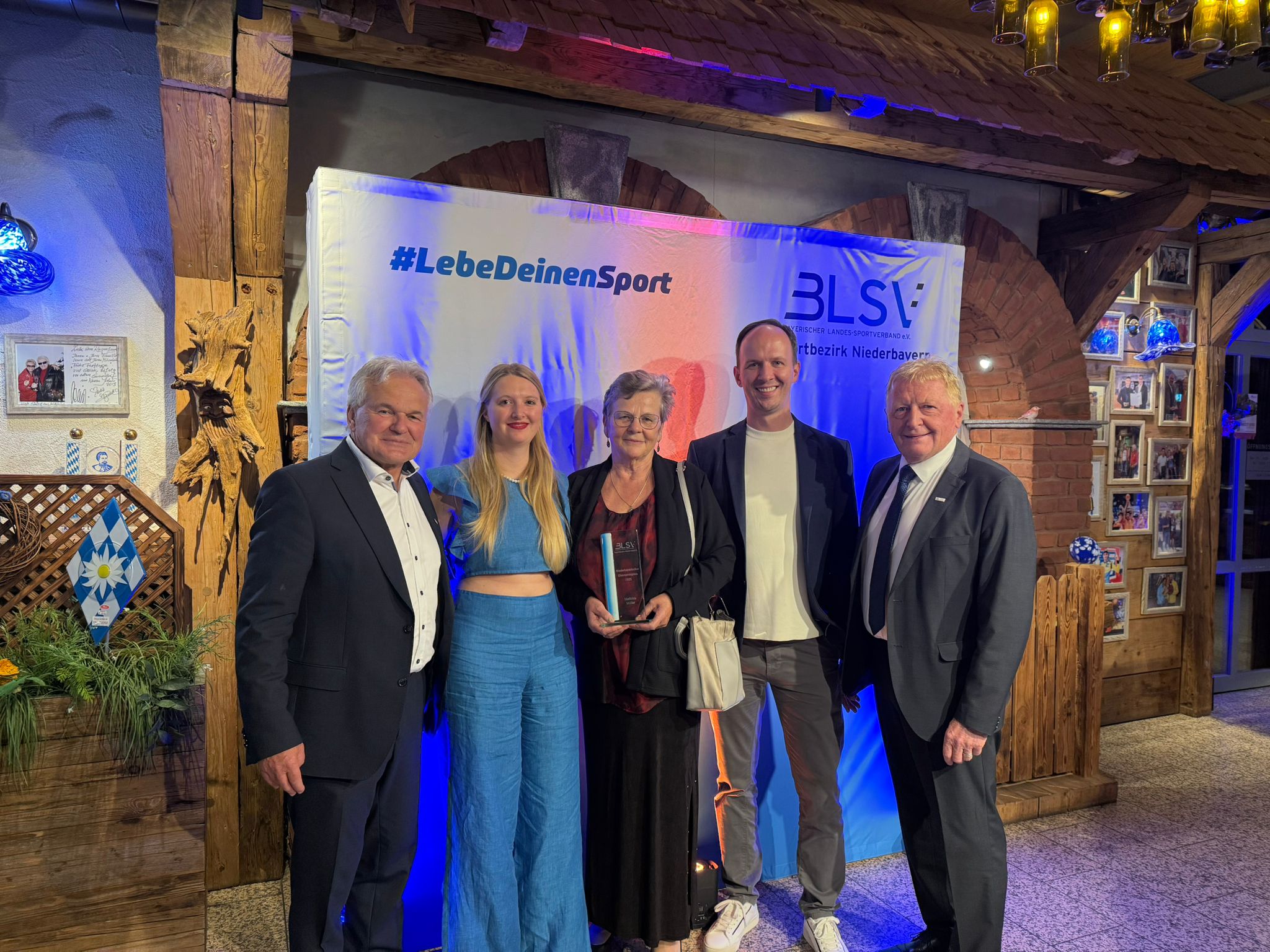 Nachdem sie ab 2001 für sechs Jahre den Vorsitz des Kreisjugendrings Rottal-Inn innehatte, kam Mathilde Müller ab 2004 als stellvertretende Bezirksvorsitzende auch erstmals mit der Bayerischen Sportjugend in Kontakt. Nur drei Jahre später wagte sie den Sprung an die Spitze der Bezirksjugendleitung. Diese Position hatte die rührige und allseits geschätzte Funktionärin für zwei Amtsperioden – demnach bis 2015 inne – und wurde für ihre Verdienste später zur Ehrenvorsitzenden ernannt. Nach ihrer Zeit im Bezirk unterstützte sie ihre BSJ allerdings dann auf Kreisebene, wo sie im Landkreis Rottal-Inn bis 2023 das Amt der Kreisjugendleiterin bekleidete. „Sie sucht ihresgleichen und ist weiterhin eine verlässliche Kollegin, die heute noch wie ein Wirbelwind durch den Verein fegt“, formulierte Mario Wimmer, Vorsitzender der DJK Sportfreunde Reichenberg, in dessen schriftlichen Vorschlag zur Verleihung des Vereins. Doch auch die Weggefährten und aktuellen Verantwortlichen des BLSV und der BSJ huldigten Mathilde Müller für ihren beispiellosen Beitrag zur Entwicklung des niederbayerischen Jugendsports in seiner Breite und Vielfalt: „Sie ist ein Vorbild für jüngere Generationen, vor ihrer unbezahlbaren Arbeit kann man sich nur verneigen“, erörtern BLSV-Bezirksvorsitzender Otto Baumann und dessen Stellvertreter Walter Knoller, sowie BSJ-Bezirksvorsitzender Michael Limmer und dessen Stellvertreterin Laura Müller.