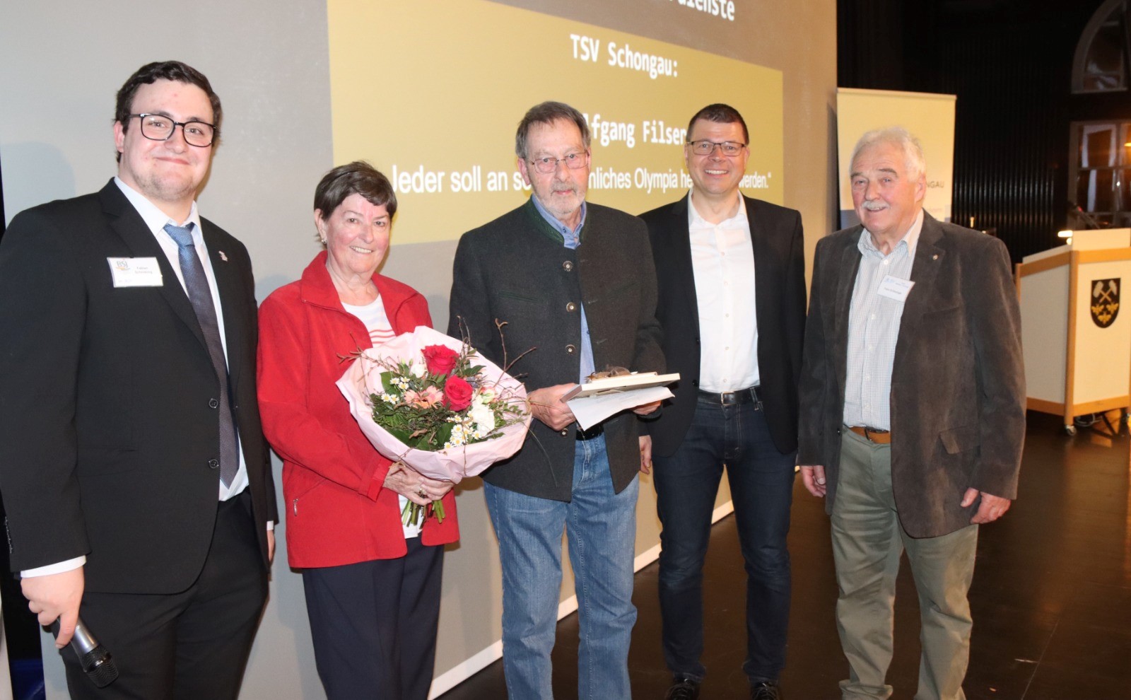 Bei der Sport­ler­eh­rung des Sport­krei­ses am 15.03.2024 in der Pei­ßen­ber­ger Tief­stol­len­halle wur­den nicht nur die erfolg­rei­chen Akti­ven aus­ge­zeich­net. Eine beson­dere Ehrung bekam auch noch Wolf­gang Filser, der seit 1968 als Übungs­lei­ter beim TSV Schon­gau tätig ist.